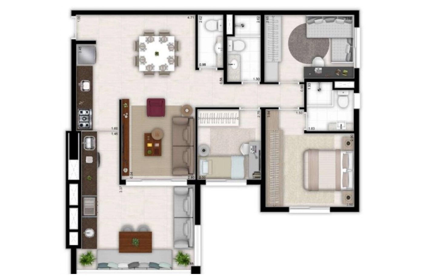 Planta 02 - 3 dorm 100m²