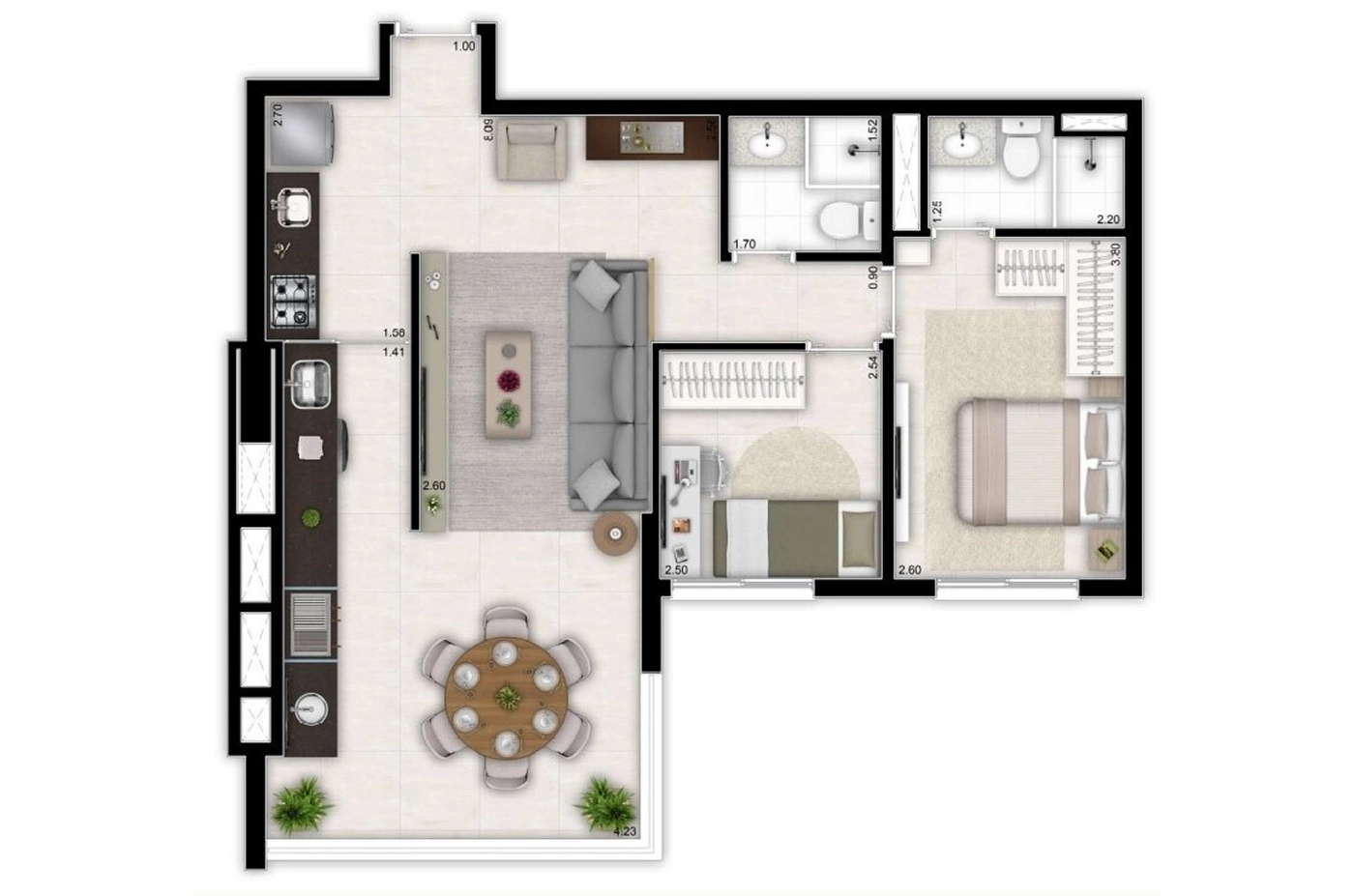 Planta 01 - 2 dorm 70m²